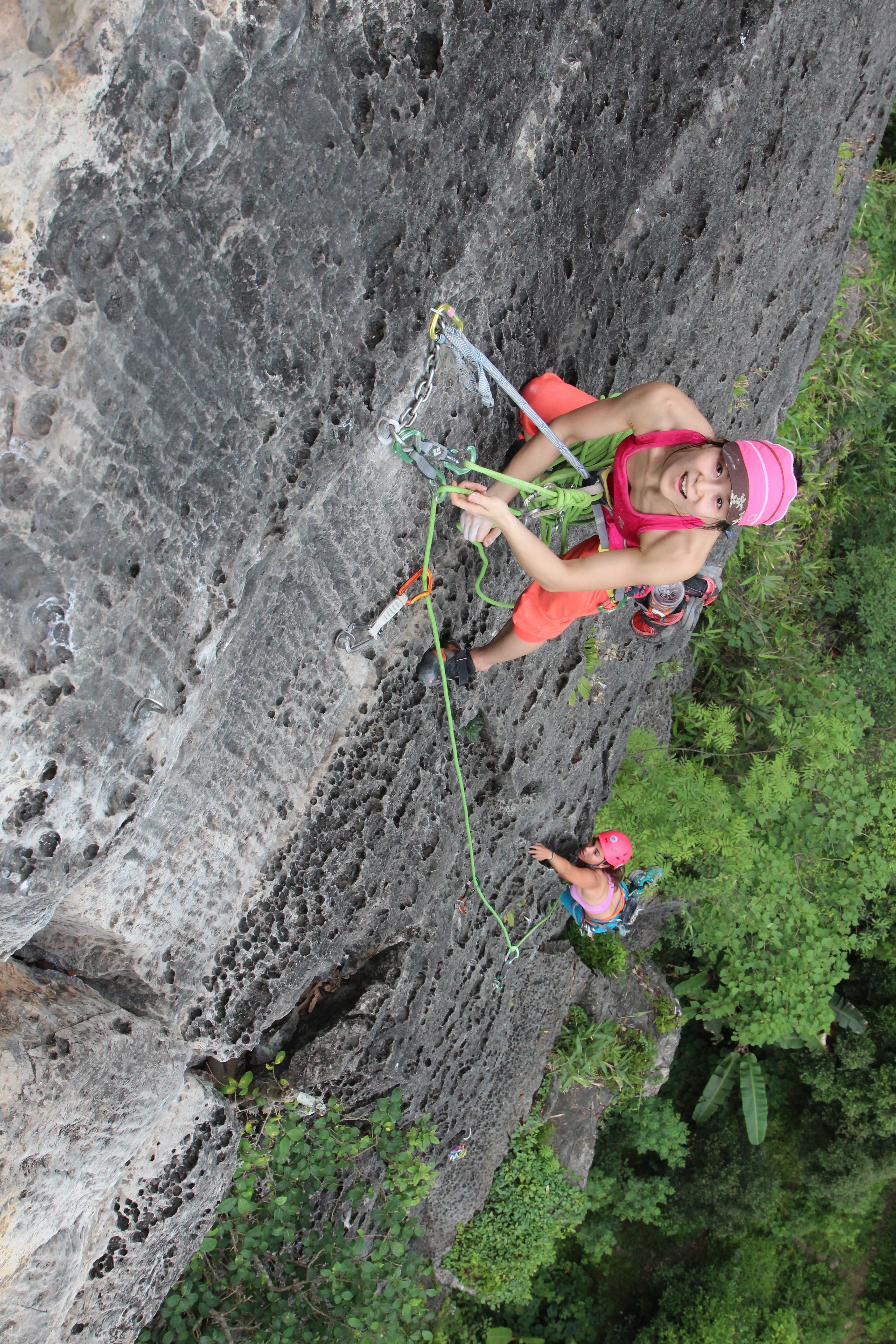 La première que nous avons rencontré s’appelle Frida Shi, elle est professeur d’Art à Shanghai et a carrément décidé de nous rejoindre pendant tout notre voyage pour grimper avec nous. Motivées on vous à dit ! Grimper était un rêve depuis longtemps mais elle n’avait jamais vraiment su comment attaquer. Ainsi elle grimpe depuis 3 ans et se met des gros combats dans des 6a qui valent toutes les médailles de bravoure.